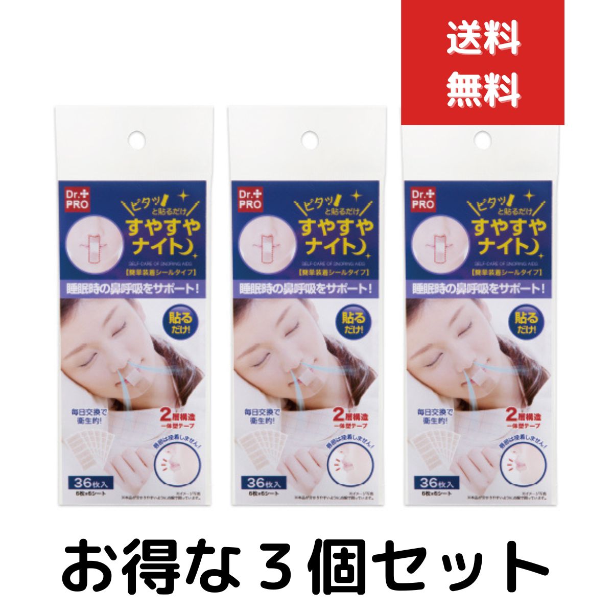 ピタッと貼るだけ すやすやナイト 36枚入 3個セット 鼻呼吸を習慣づけて快眠へ! 睡眠中に貼るだけで、鼻呼吸をサポート♪ 口・のどの乾きに いびき対策