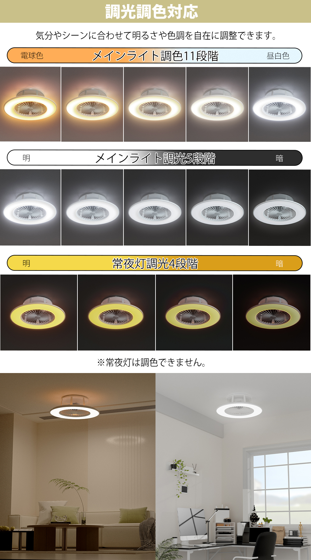 シーリングファンライト 小型 軽量 調光 調色 リモコン付き シーリングファン 風向き風量調節 1年保証
