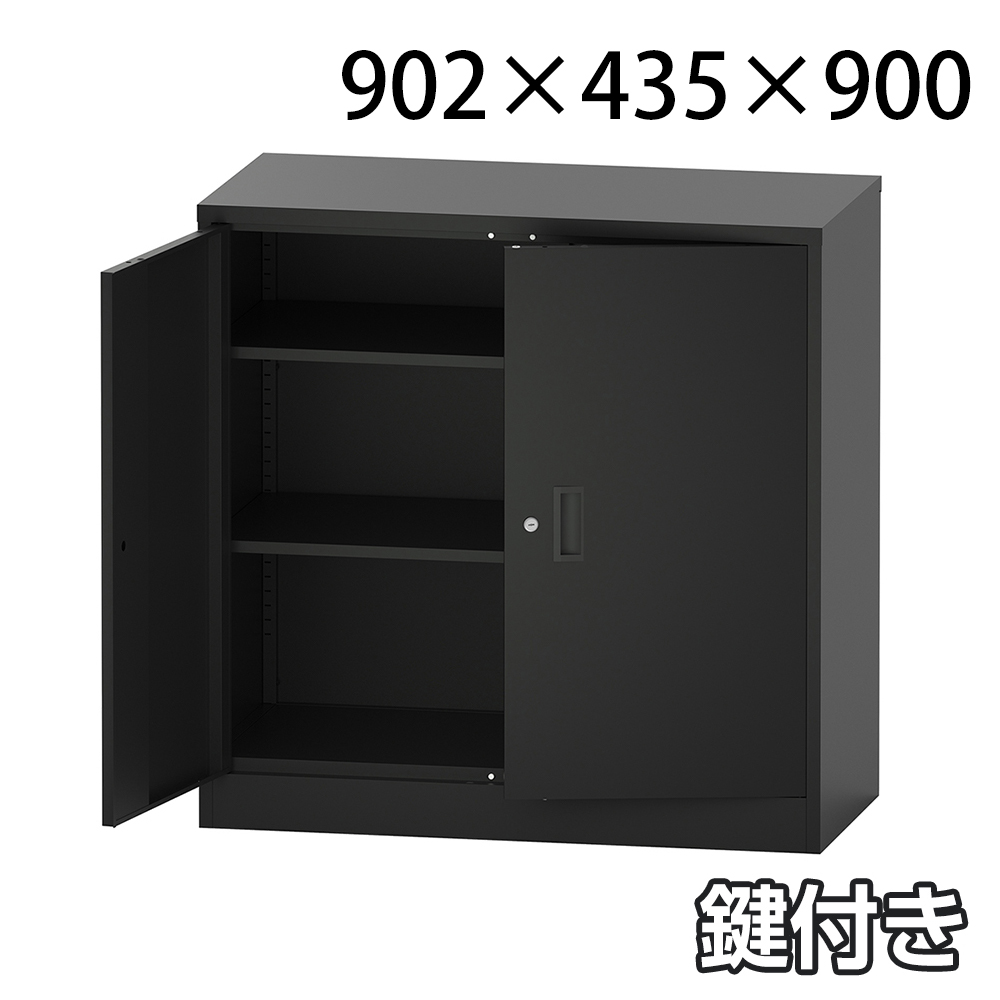 爆買 書庫 鍵付き スチール キャビネット 両開き 書類収納 A4 幅90cm 900mm シリンダー錠 可動棚 大容量 オフィス収納 事務所 収納棚 書類整理棚 業務用 会議室収納 安い おしゃれ ブラック