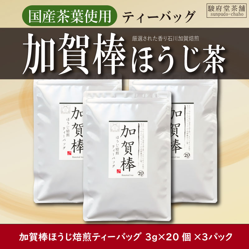 【駿府堂茶舗】加賀棒ほうじ焙煎ティーバッグ | 3g×20個×3パック | 石川加賀焙煎 | 厳選された香り | チャック付き