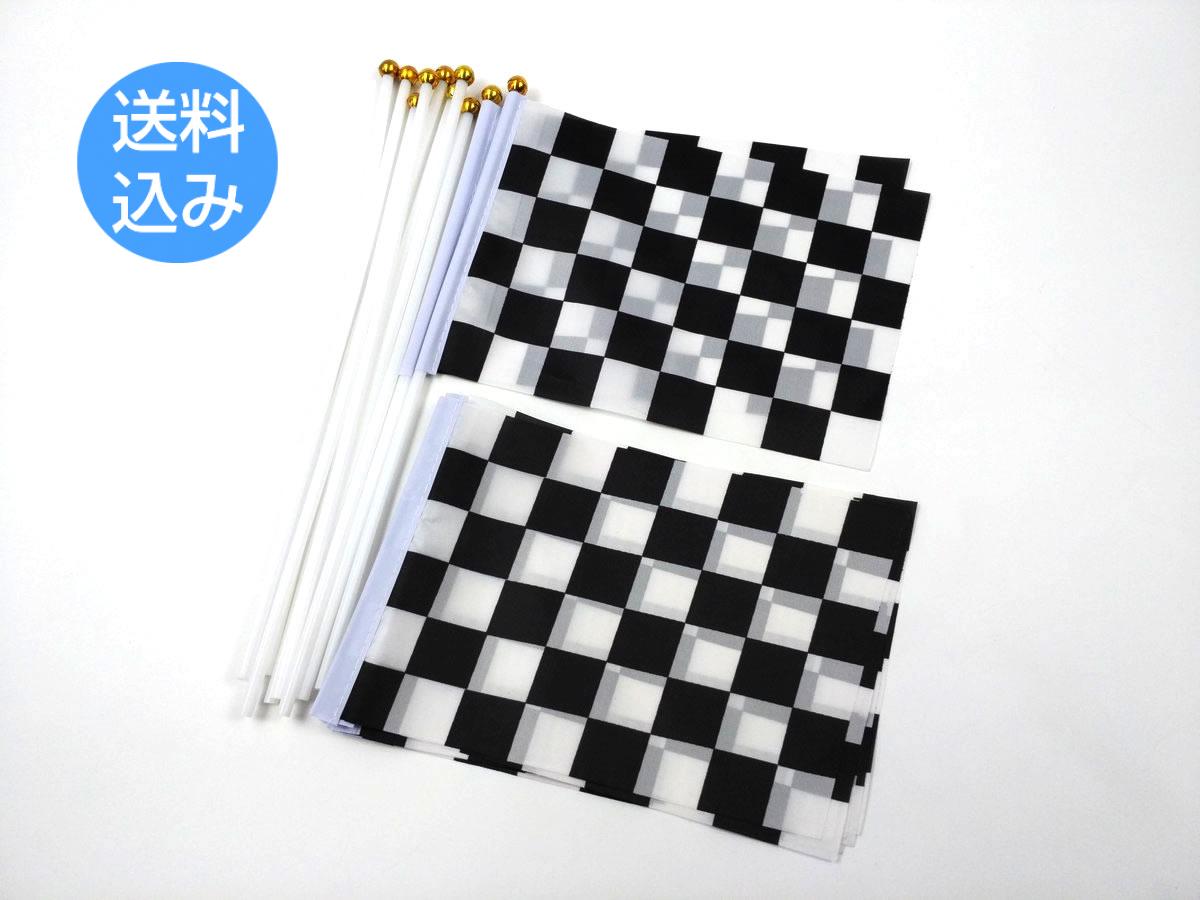 チェッカーフラッグ 旗 ミニフラッグ 10点セット 8号 棒付き