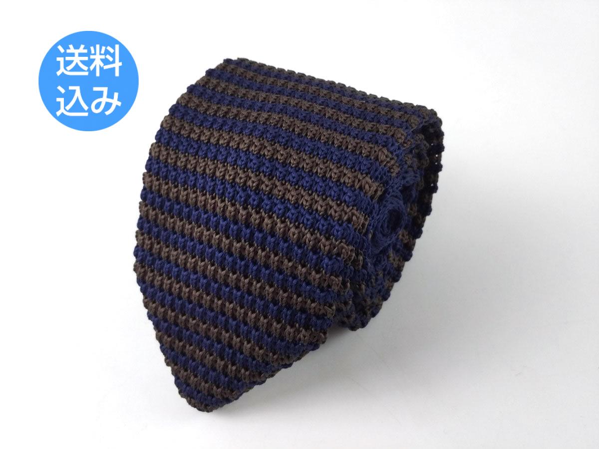 ニットタイ ナローネクタイ 剣先タイプ ストライプ ネイビー×ブラウン