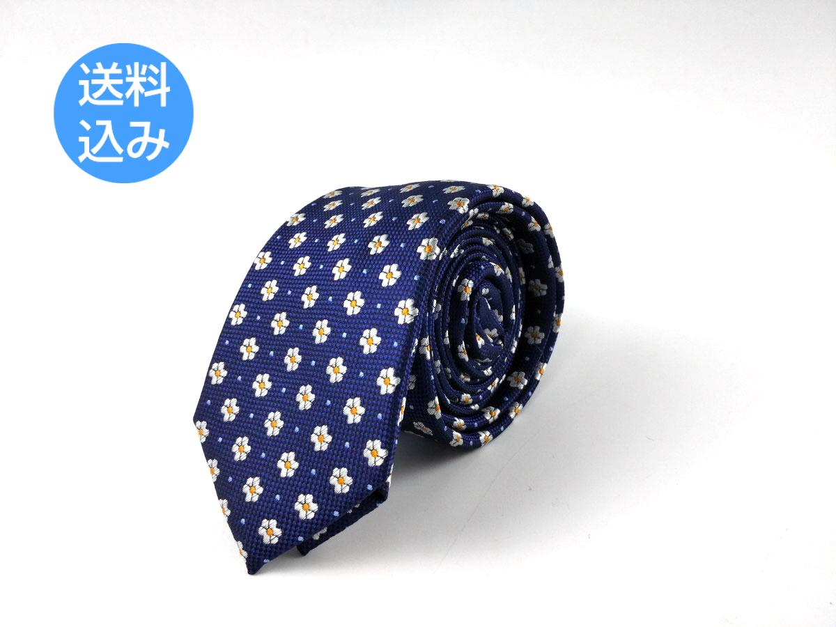 ナロータイ 細ネクタイ ネイビー 花柄モノグラム