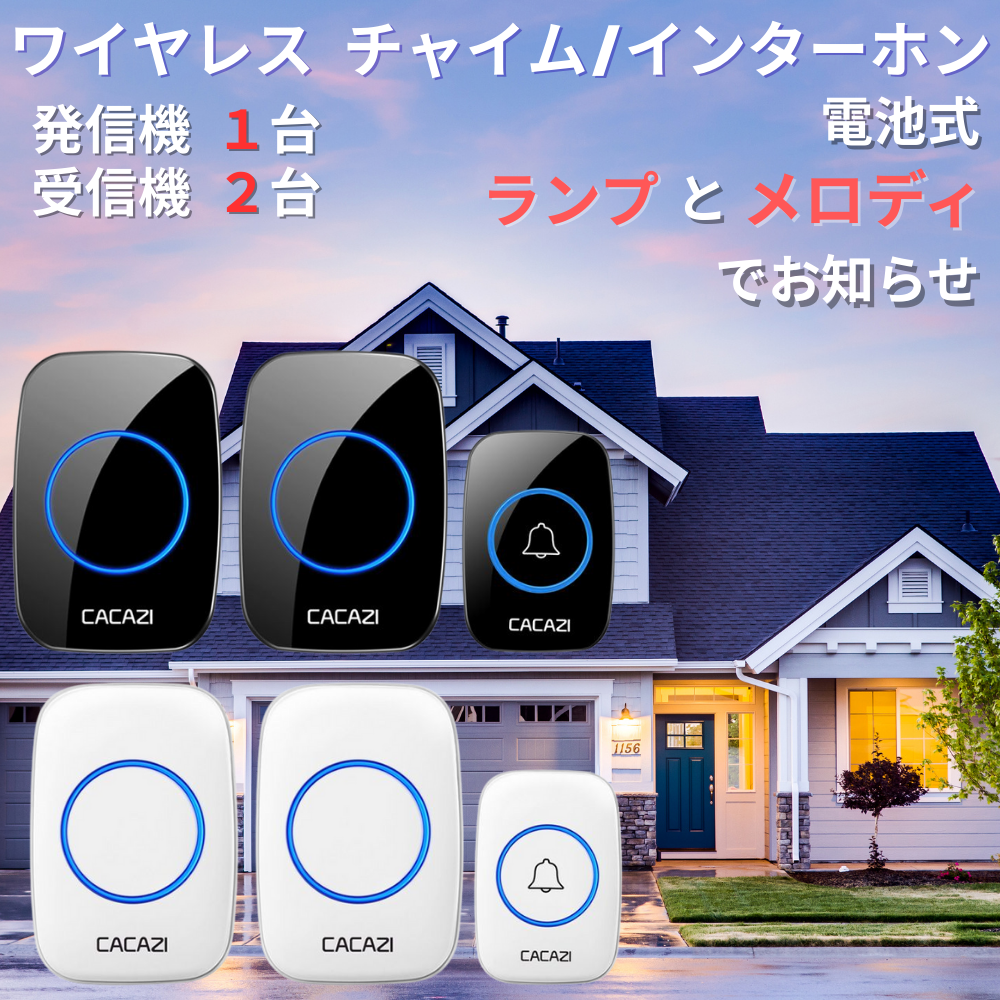 インターホン ドアホン ワイヤレス ワイヤレスチャイム インターフォン ワイヤレスインターホン 玄関チャイム チャイム 配線不要 無線 防水 シンプル