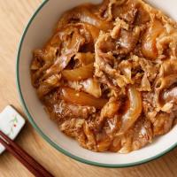 原材料:牛肉(米国)、タレ(醤油、砂糖、みりん、ごま油、醸造酢、にんにくペースト、いりごま、フルーツチャツネ、野菜調味エキス、香辛料、りんご果汁、昆布エキス、食塩)、玉ねぎ(国産)/増粘剤(加工澱粉、増粘多糖類)、カラメル色素、(一部に小麦・大豆・牛肉・ごま・りんご・豚肉を含む)