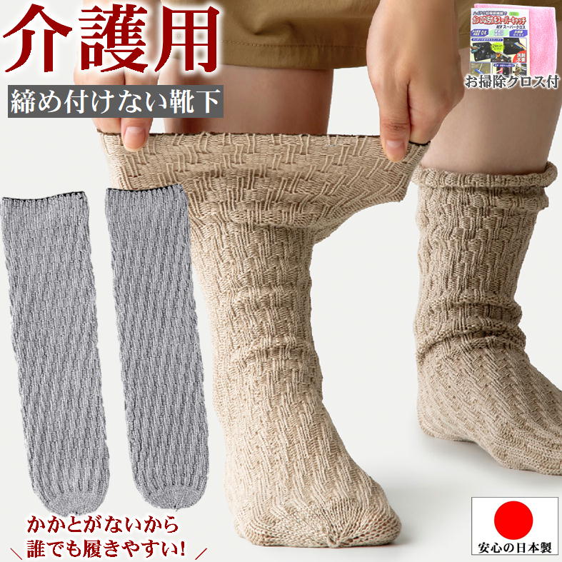 ゆるい靴下 介護用 足 むくみ 跡がつかない 締め付けない かかとなし ソックス 介護 認知症 介護衣料 足首ゆったり バリアフリー 口ゴムゆったり靴下 日本製