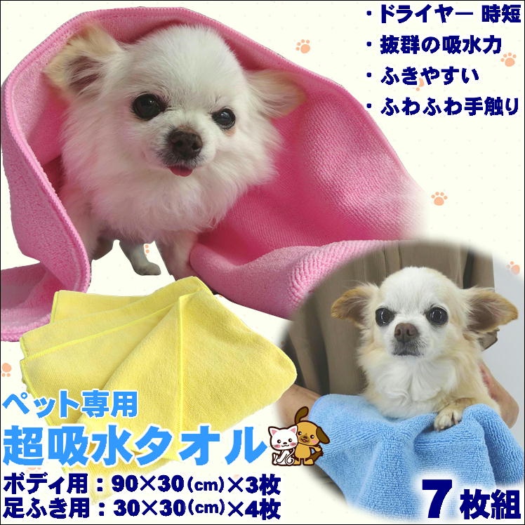 ペット シャンプー タオル 犬 猫 ペット用タオル バスタオル 風呂 吸水タオル ペット専用 速乾タオル わんちゃん 体拭き 足拭き タオル 7枚組