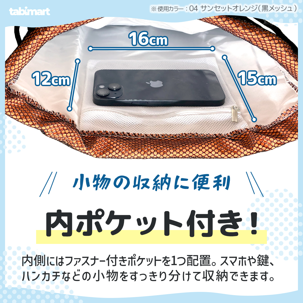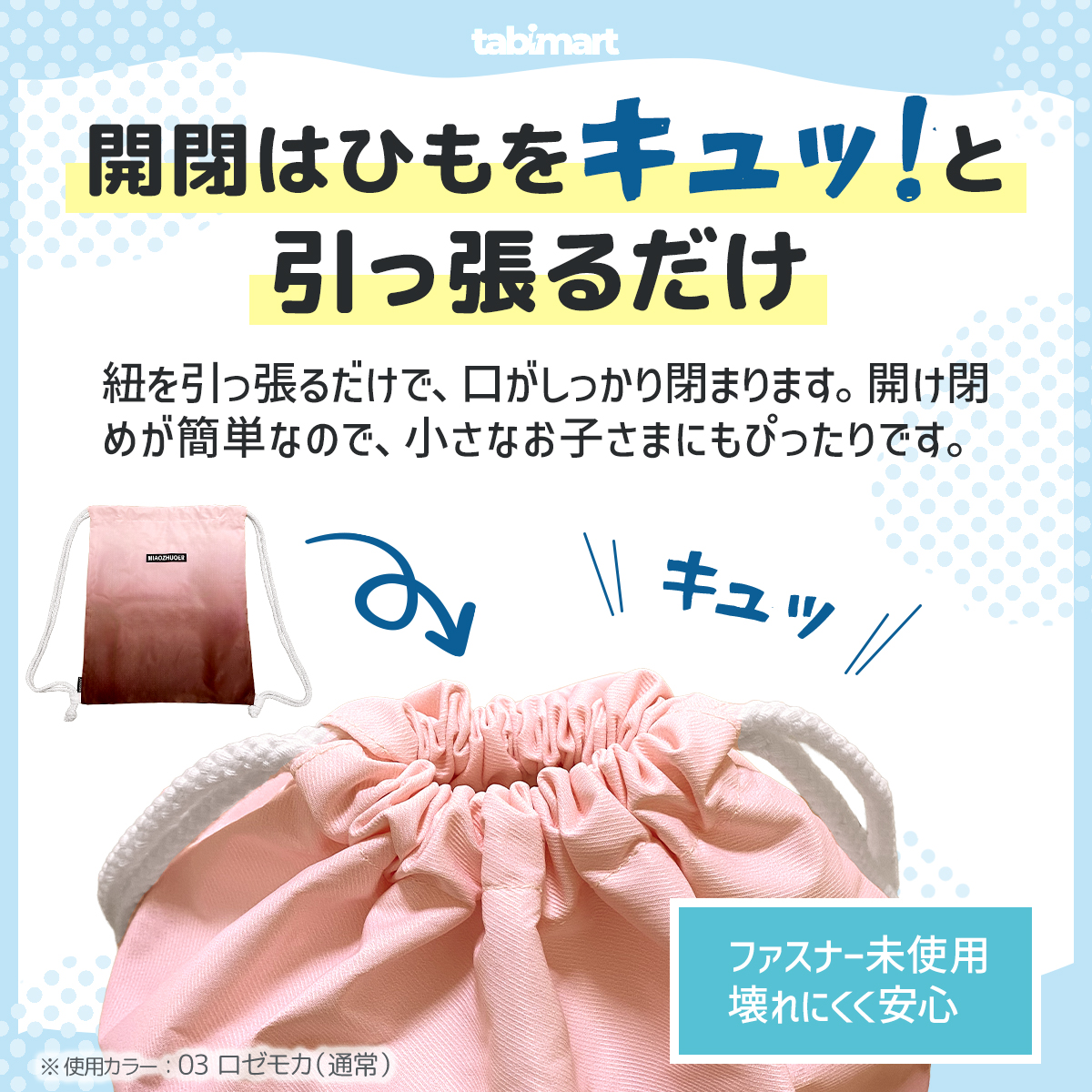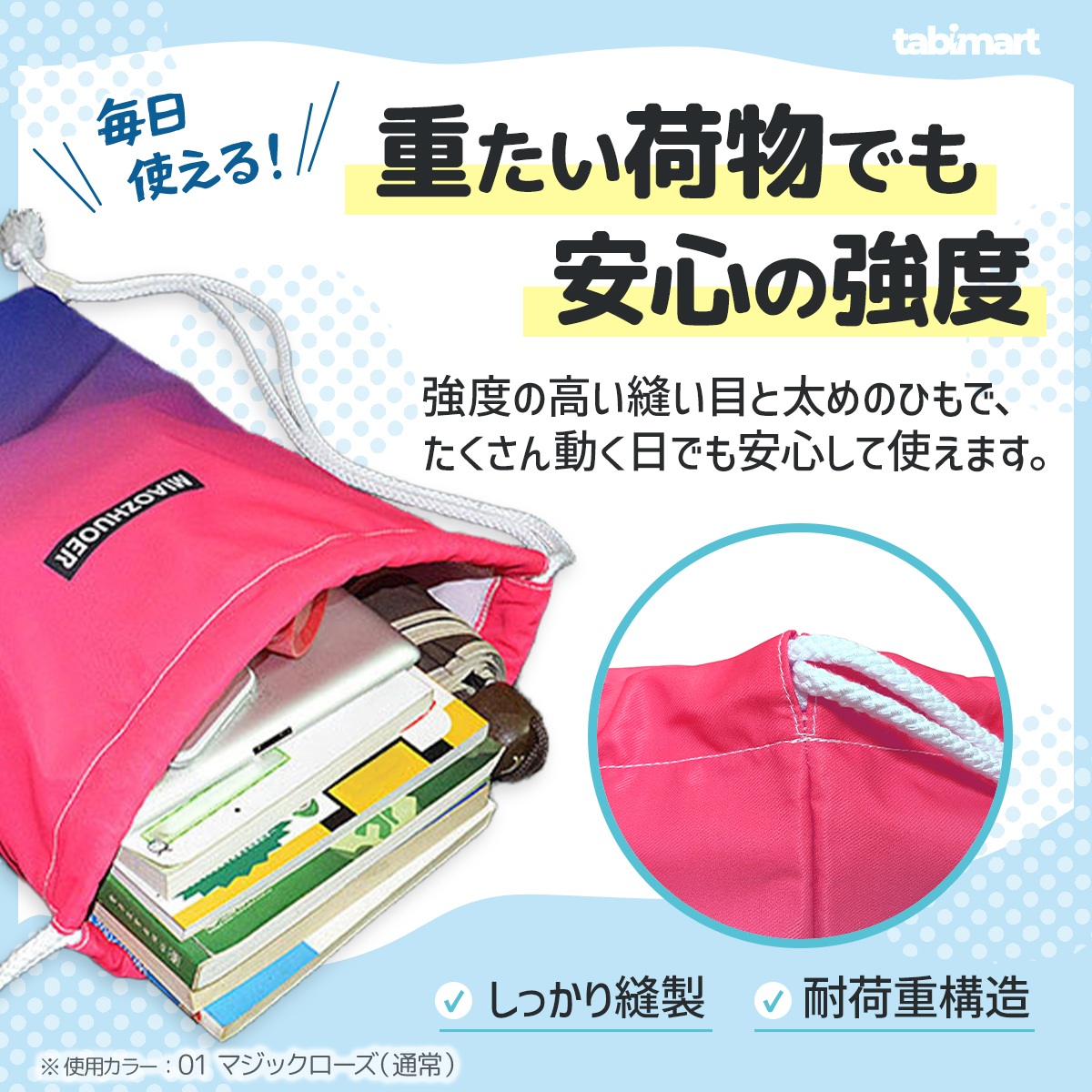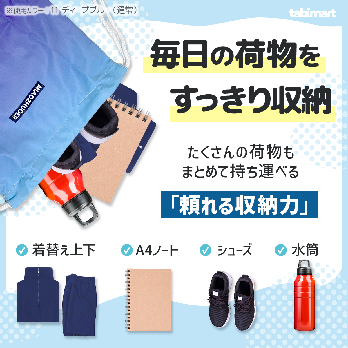 撥水加工を施したナップサックは、雨の日の通学やアウトドアにも安心して使えます。大容量サイズで、体操服やシューズ、A4ノート、水筒もすっきり収納でき、ランドセルの上から背負える便利設計。内ポケット付きでスマホや鍵、タオルなどの小物を分けて収納できるのも魅力。丈夫な生地としっかりした縫製で、子どもから大人まで長く使えます。黒メッシュタイプと通常タイプを用意し、好みやコーデに合わせて選べます。ジムバッグ、プールバッグ、旅行バッグ、部活やスポーツバッグとしても大活躍。豊富なカラーバリエーションで推しカラーがきっと見つかります。ユニセックスデザインなのでプレゼントにもおすすめです。