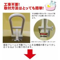 | 浴槽縁に固定するだけの簡単取付。 腰や膝への負担の少ない設計。 濡れた床や浴室の転倒・ケガ防止対策にも! | ||||||||