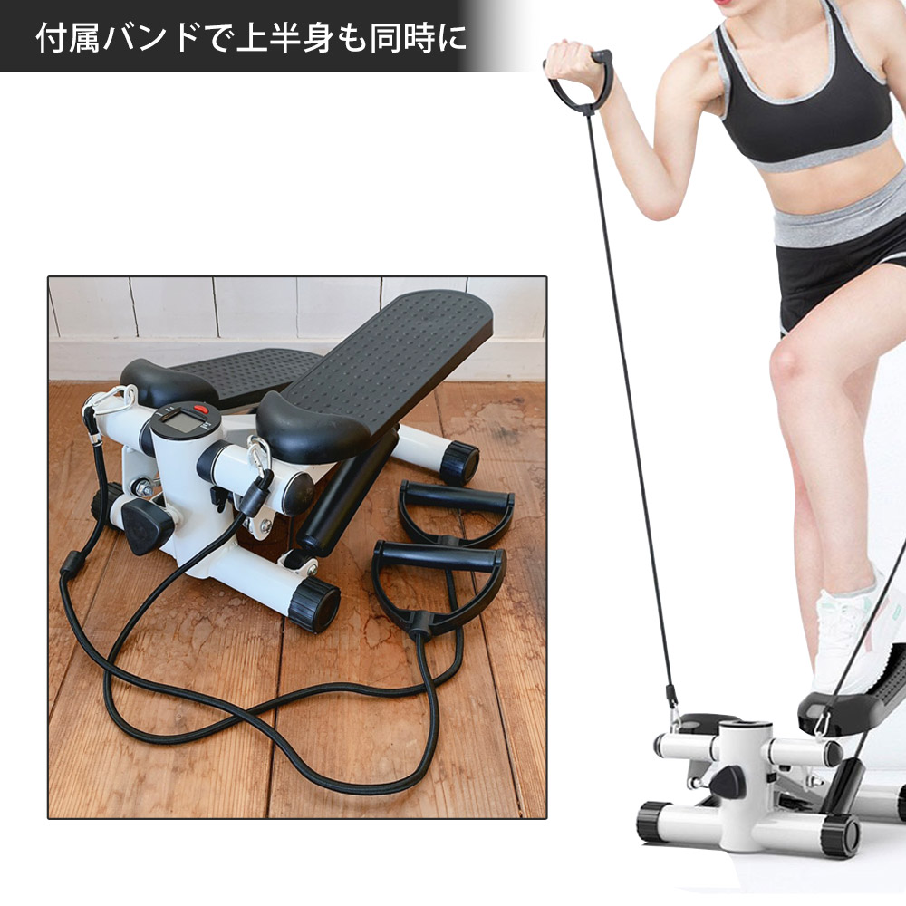 本体に取り付け可能な2本のバンドが付属。ステップ運動に合わせて、ひっぱりながら使用する事で腕や肩に負荷をかけ、上半身も しっかりとトレーニングすることができます。