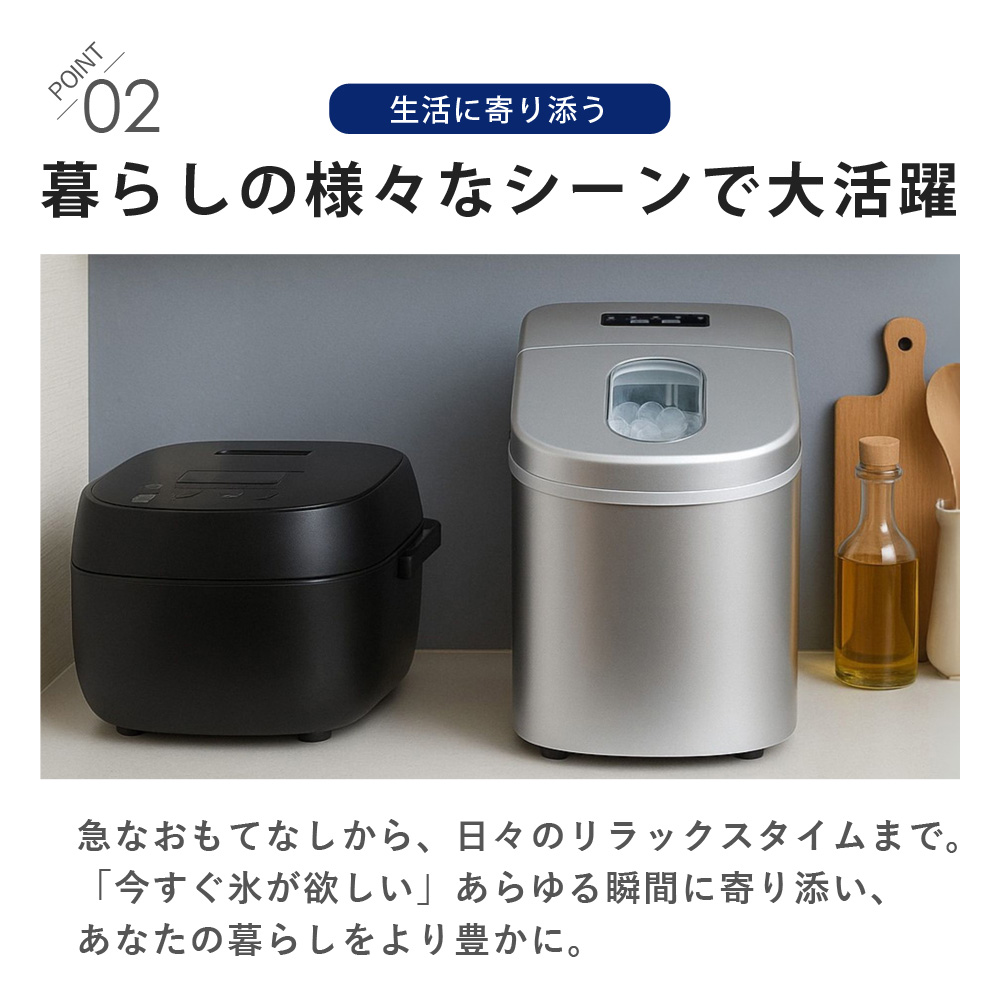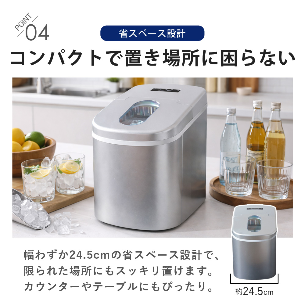 検索キーワード:製氷機 製氷器 電動 自動 オート 短時間 時間短縮 卓上 コンパクト 家庭用 高速 アイスメーカー こおり 氷 簡単操作 卓上 アウトドア レジャー バーベキュー 釣り キャンプ 料理 部活 会社 シルバー