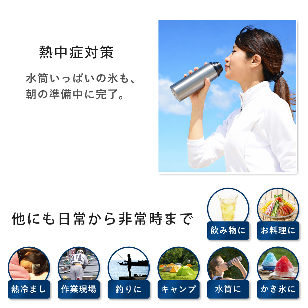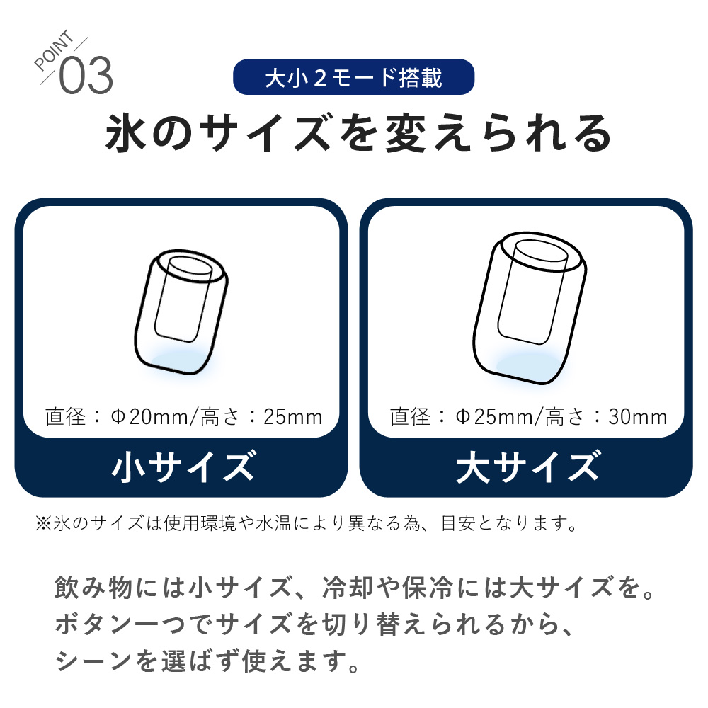 用途に合わせてマイボトルや飲み物・かき氷など、お気に入りの氷サイズで製氷可能です。