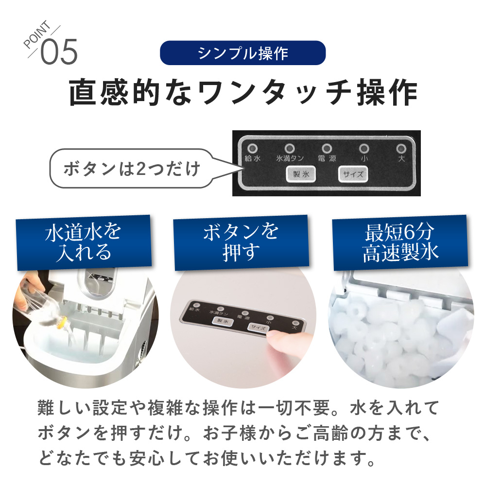水道水を入れてボタンを押すだけで簡単に氷が出来ます。