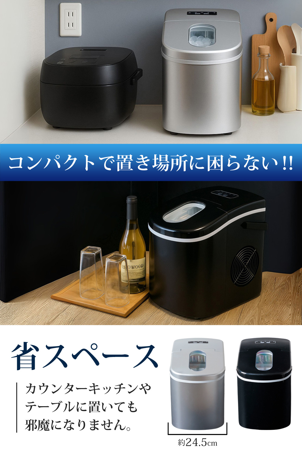 【使用上のご注意事項】 ・包装箱から本体を取り出し使用する前に、貯水タンク内に小さな埃など不純物が入っていないことをお確かめください。 ・ミネラルウォーターや井戸水など、無殺菌の水は使用しないでください。塩素消毒された水道水のご使用をお勧めします。 ・水質によって氷ににおいがつく場合がございます。ご購入後、初めて製氷した氷はにおいがすることがありますが故障ではございません。ご使用とともに、においはなくなります。においが気になる場合は、市販されている製氷機洗浄剤やクエン酸などで一度お手入れすることをお勧めします。 ・氷の品質を保つためにも、こまめに水を交換してください。 |