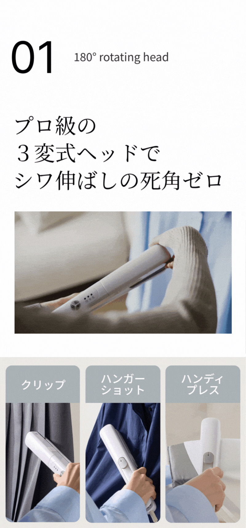 プロ級の3変式ヘッドで新感覚・シワ伸ばし