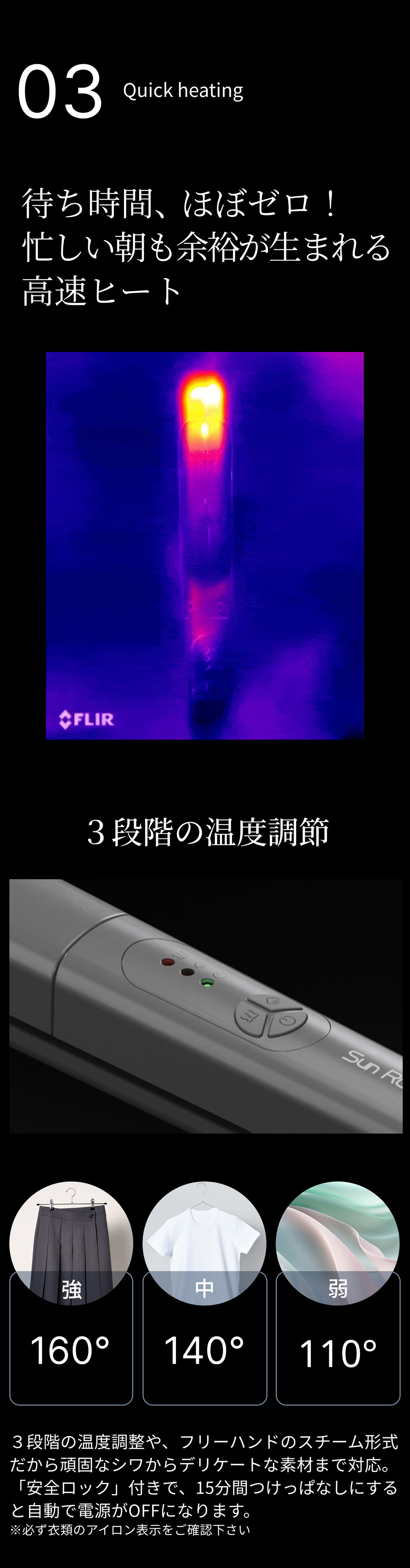 | アイロン面の温度(約) | 110〜160℃ |