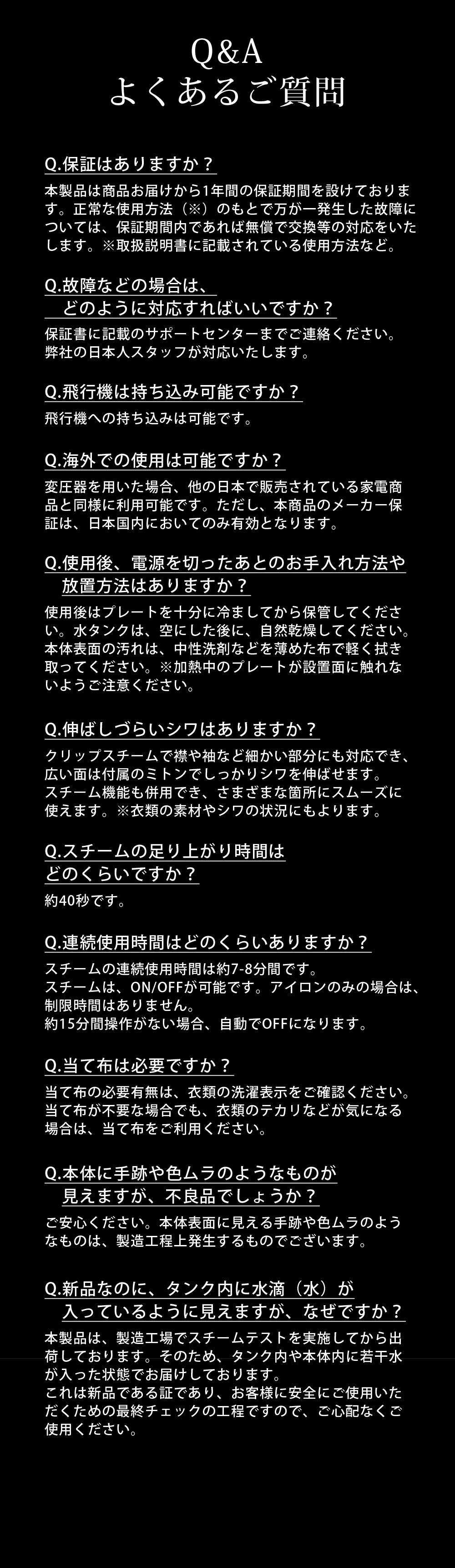 | スチーム連続稼働時間(約) | 7〜8分 |
