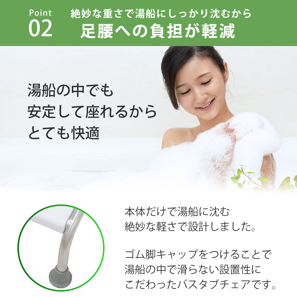 浴槽の中で座れる座椅子として、入浴時の足腰への負担を軽減します。