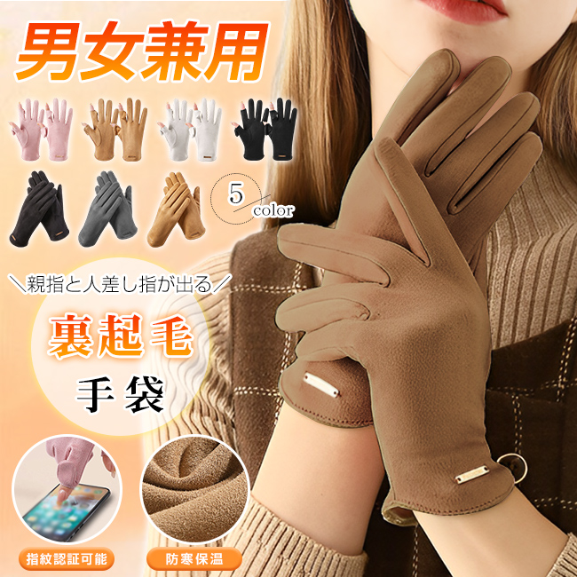 【2点目半額】手袋 指穴グローブ 指出し 裏起毛 スマホ対応 レディース メンズ 親指と人差し指 5本指 指紋認証 暖かい 柔らかい 防寒 爆買