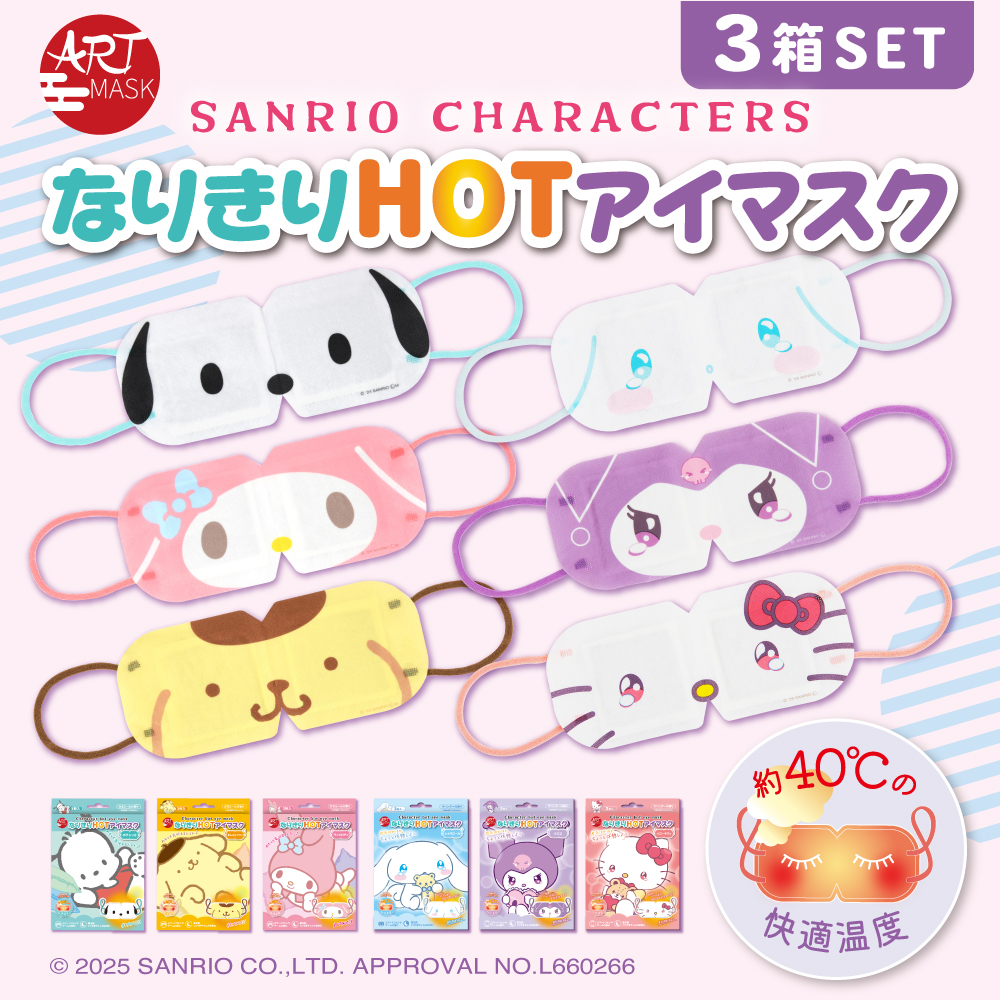 3箱セット(9枚入り) アートマスク ARTMASK サンリオ ポチャッコ ポムポムプリン マイメロディ シナモロール クロミ ハローキティ なりきりHOTアイマスク