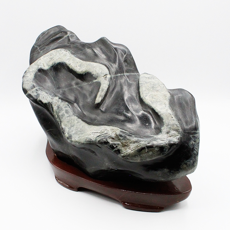 この置物は、蛇紋石と呼ばれる天然石を使用し、風化による白い表面を蛇の形に削り出したもので、塗装は一切施されていません。