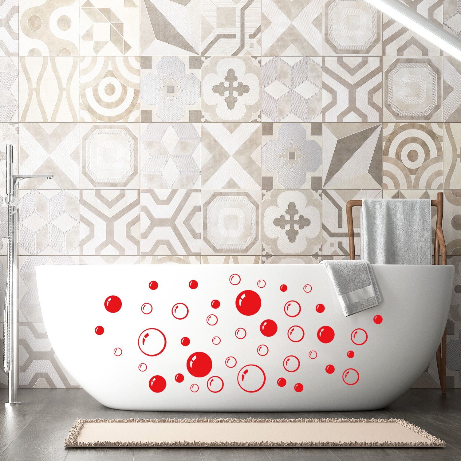 泡 サークル ウォールステッカー W46 大きなソープ かわいい 壁ステッカー 壁紙 防水 ステッカー 浴室 シャワー タイル 装飾 浴室 子供部屋用 2枚セット 爆買