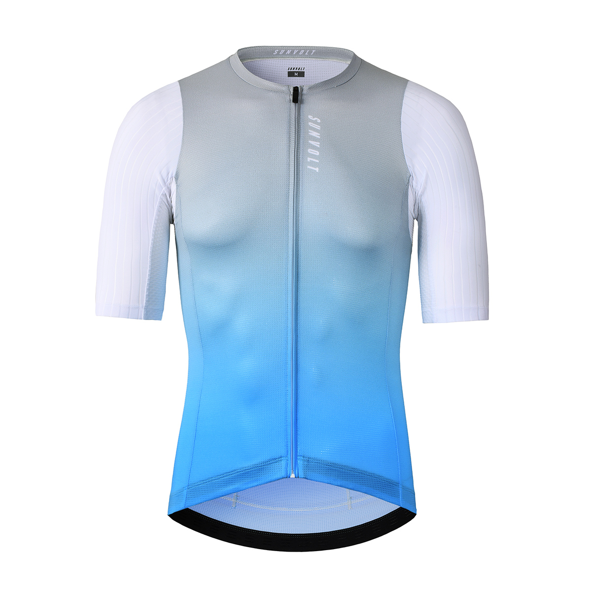袖部分にはエアロ効果が見込まれる縦溝のついた生地を使用した半袖ジャージ。