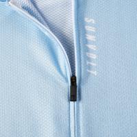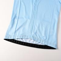 低めに設定した襟元は首まわりの圧迫感を抑え、前傾姿勢でも違和感のない設計。やや長めのセットイン袖を採用することで、空気抵抗の低減とともに、腕まわりをすっきりと見せる美しいシルエットに仕上げています。