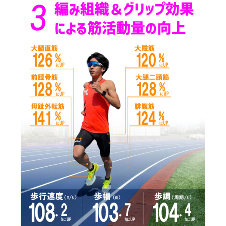 ・編み組織&グリップ効果による筋活動量の向上