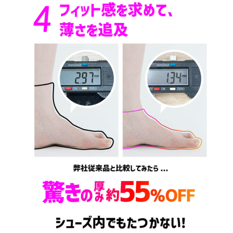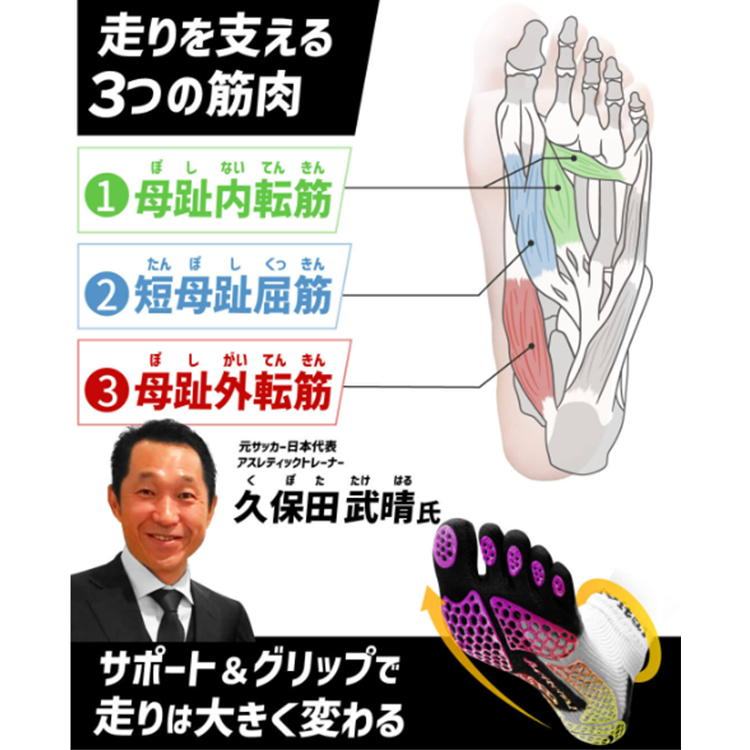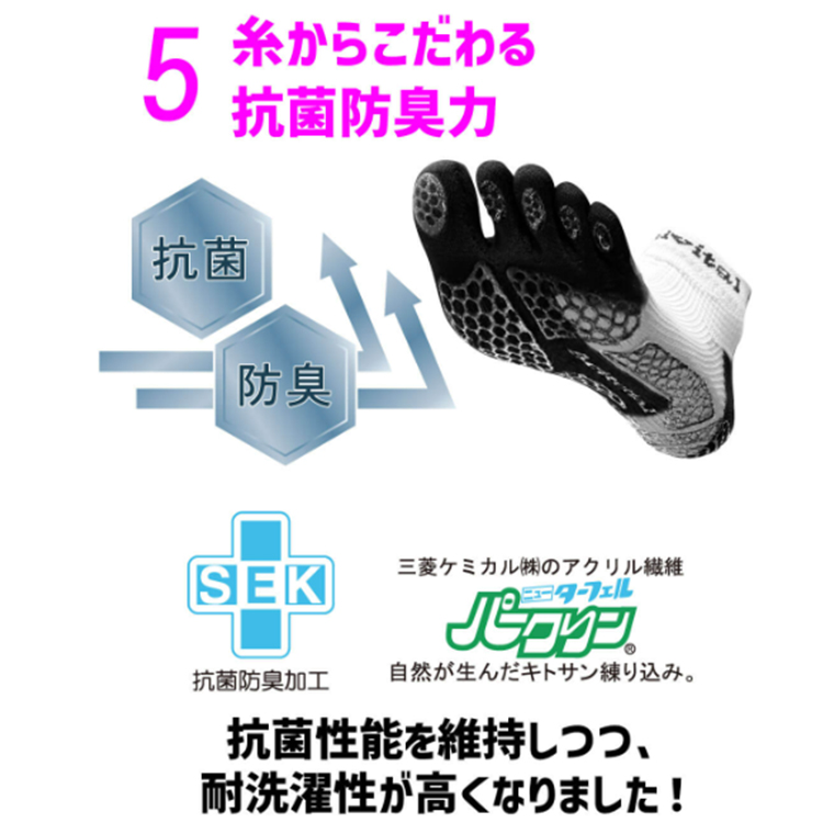 開発者の靭帯損傷経験から誕生し、累計販売数77万足(2022.4月時点)の代表選手も愛用するソックスが進化を遂げる。 特許取得の編み組織が可能にする足首の安定感、足指を強く使える5本指形状が生む質の高いサポート性。 解剖学的アプローチでしたグリップ力は従来ソックスの1.6倍!さらにSEK抗菌防臭加工の糸を採用。
