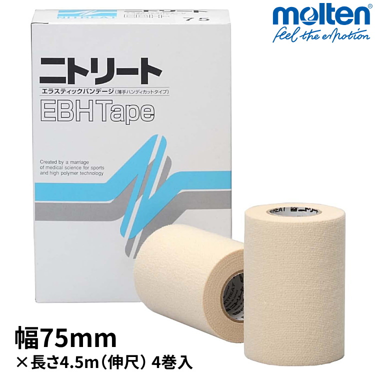 テーピング 伸縮 薄手 固定テープ 75mm×4.5m 1箱 4巻入 二トリート エラスティックバンテージ EBHテープ EBH-75