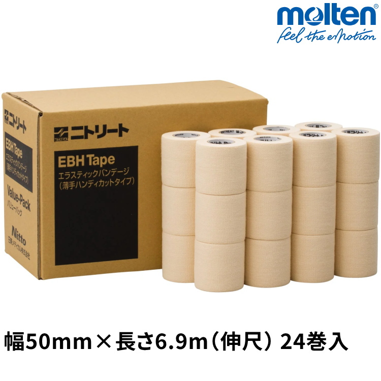 テーピング 伸縮 薄手 固定テープ 50mm×6.9m 1箱 24巻入 二トリート エラスティックバンテージ バリューパック EBHV-50