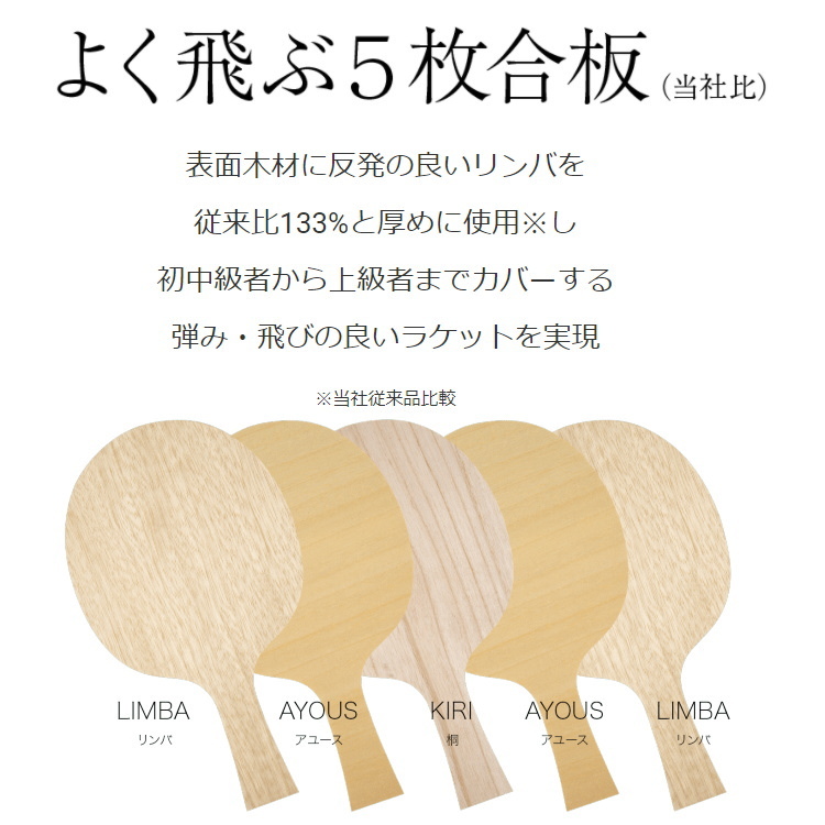 | 元日本代表坂本竜介氏プロデュース。飛びと軽さが特徴の5枚合板。 |