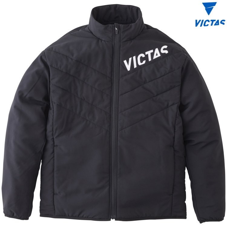 タイトシルエットながらナチュラルストレッチの機能素材の採用で動きやすさも兼ね備えた、肩口のVICTASタイプロゴがスタイリッシュなウオーマージャケットです。
