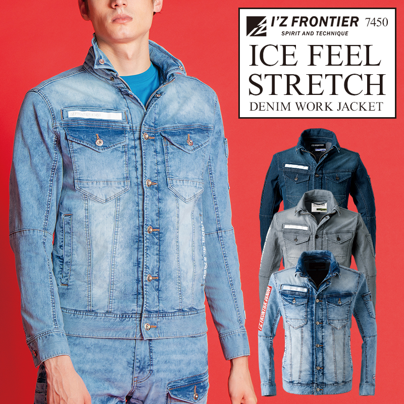 アイズフロンティア 作業服 作業着 接触冷感ストレッチデニムワークワークジャケット 春夏用 メンズ 7450 2024春夏新作 S-4L