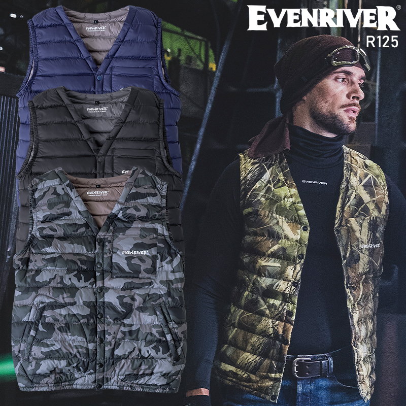 中綿にファイバーダウンを使用した薄く温かい軽量防寒ウェア