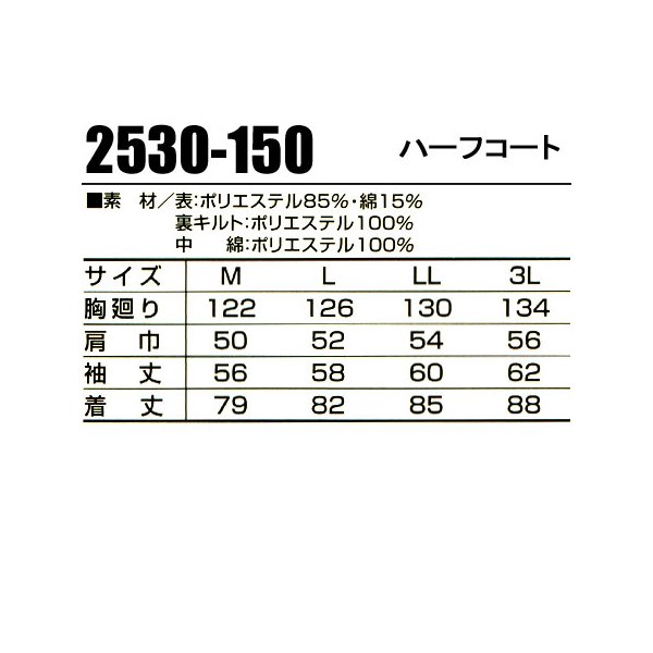 寅壱 作業服 寅壱 防寒着 ドカジャン ハーフコート 2530-150 秋冬 TORAICHI 作業着