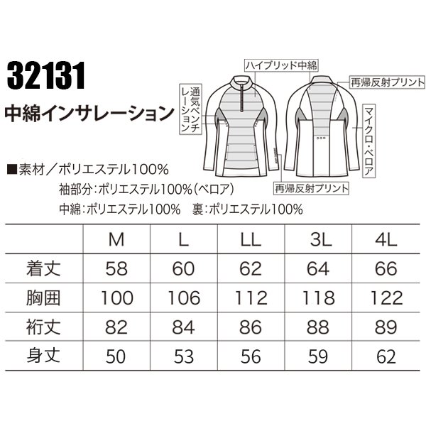 秋冬用 作業服 作業着 防寒着 中綿インサレーション クロダルマ KURODARUMA 32131