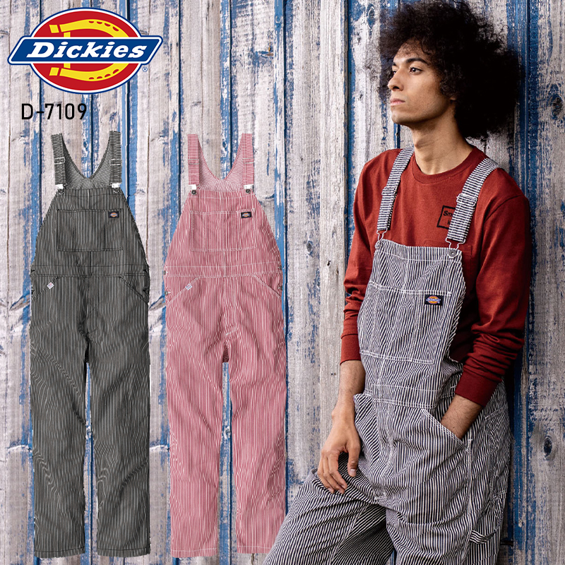 作業服 Dickies(ディッキーズ) ライトストレッチヒッコリーオーバーオール 春夏用 男女兼用 d-7109 コーコス信岡 作業着 2024春夏新作 XS-3XL