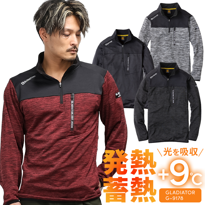 作業服 防寒着 グラディエーター G-9178 光発熱 長袖 ハーフジップシャツ ストレッチ 保温 男女兼用 作業着 2024秋冬新作 S-XXL