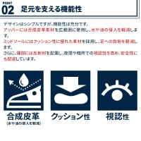 アッパーは合成皮革素材を使用し、水や油の侵入を防ぎます