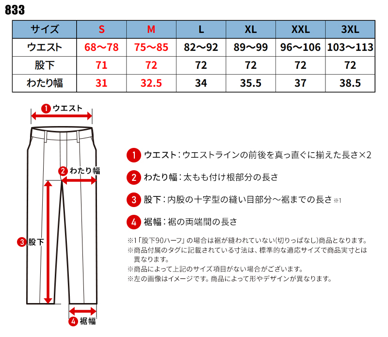 サイズをクリックすると該当ページへ移動します