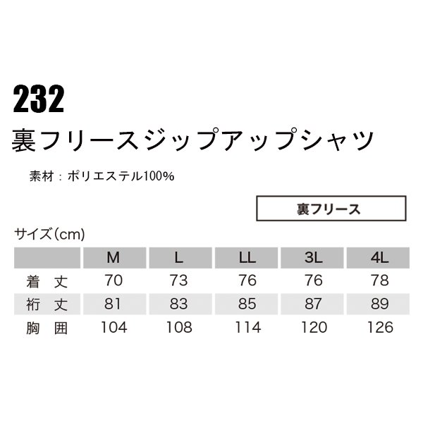 作業服 作業着 秋冬用 裏フリースジップアップシャツ メンズ 鳳皇HOOH 232