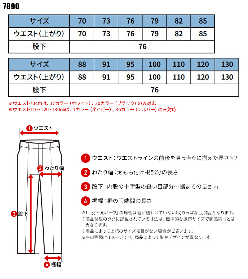 110・120・130サイズは、1カラー(ネイビー)、20カラー(ブラック)、36カラー(シルバー)のみ対応