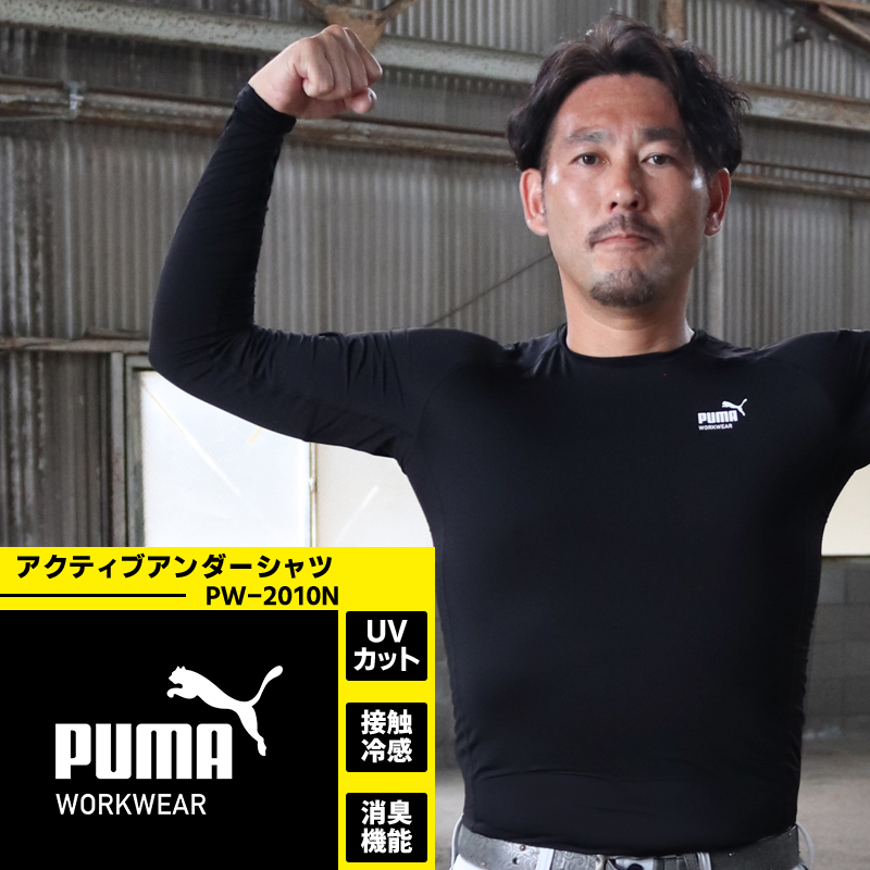 作業ウェアPUMA アクティブアンダー長袖シャツ プーマワークウェア pw-2010n 春夏用 インナー 作業服 作業着 PUMA WORKWEAR S-LL