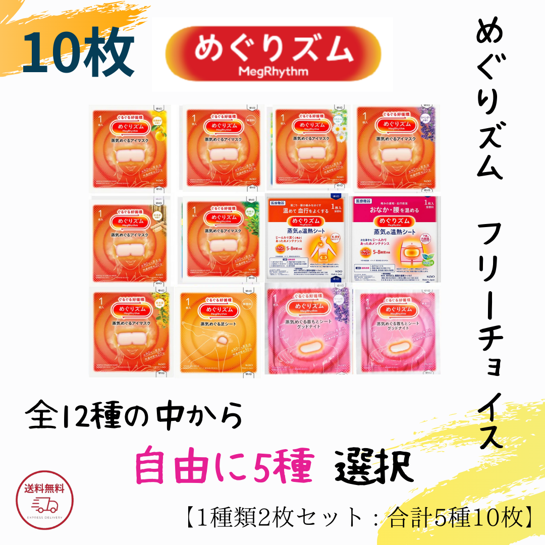 【自由選択】選べる 花王 めぐりズム 12種類から5種 選択 × 2枚ずつ(1種類2枚ずつ : 合計 5種類 10枚)アイマスク フリーチョイス 選べる5枚