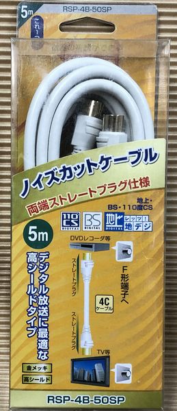 RSP-4B-50SP 5m 両端ストレートプラグ ノイズカットテレビケーブルデジタル対応 サン電子