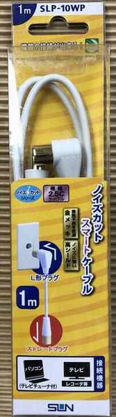 SLP-10WP サン電子 1m ノイズカット アンテナケーブル 白 L形プラグ:ストレートプラグ