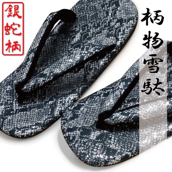 セクエルを使用したラメが独創的な銀蛇柄雪駄。