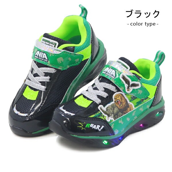 光る靴 アニア スニーカー キッズ 男の子 靴 子供靴 マジック キッズシューズ ANIA アニマルアドベンチャー